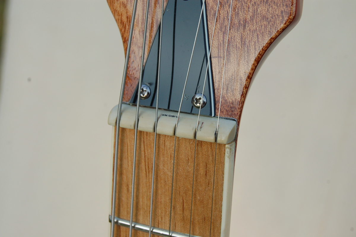 the nut is using a shim. I like the string height a bit high at nut end for more 'feel' with cowboy chords. Didn't want