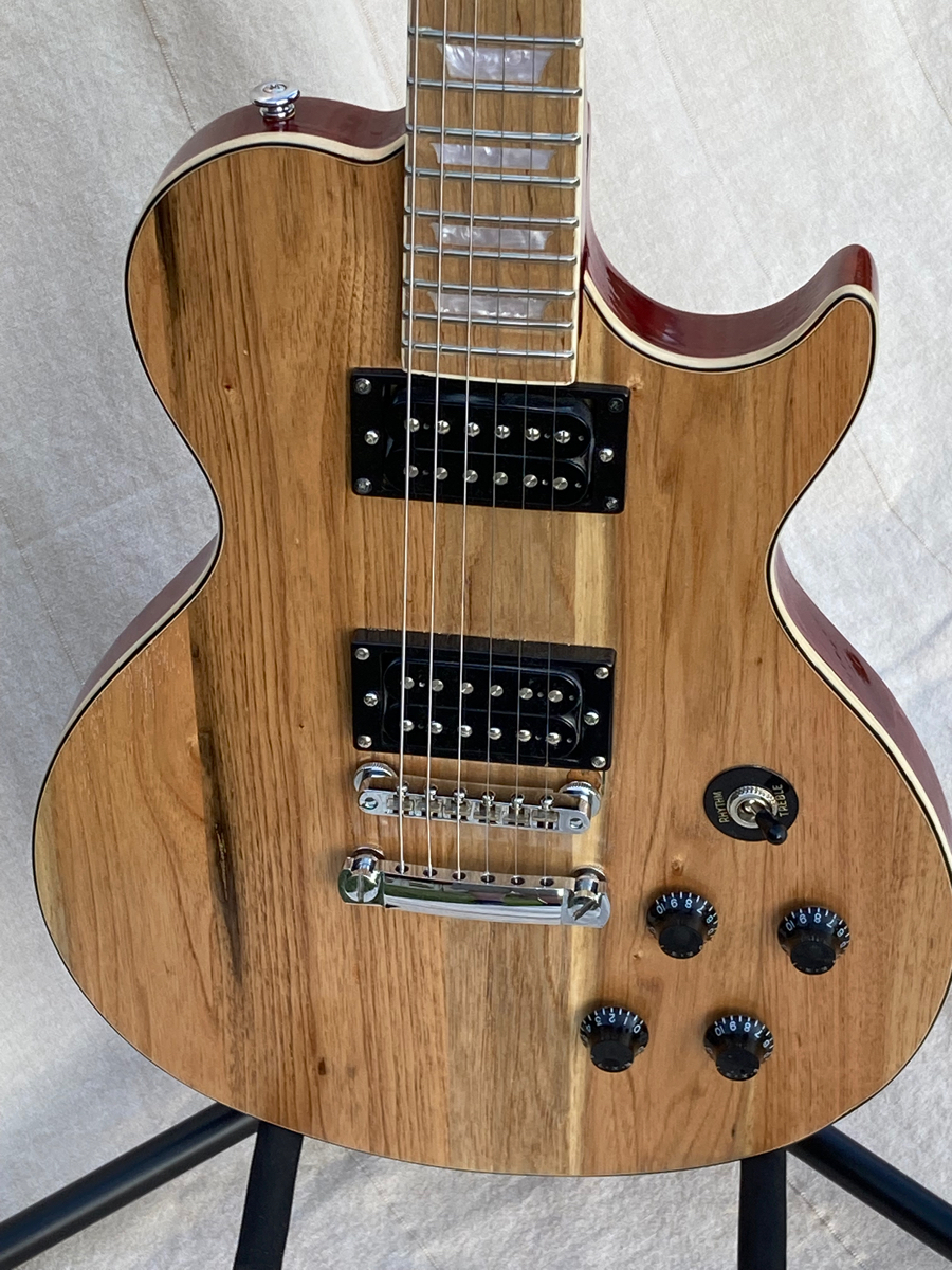 A new tune-o-matic style saddle bridge added, saddles are brass. The original bridge was