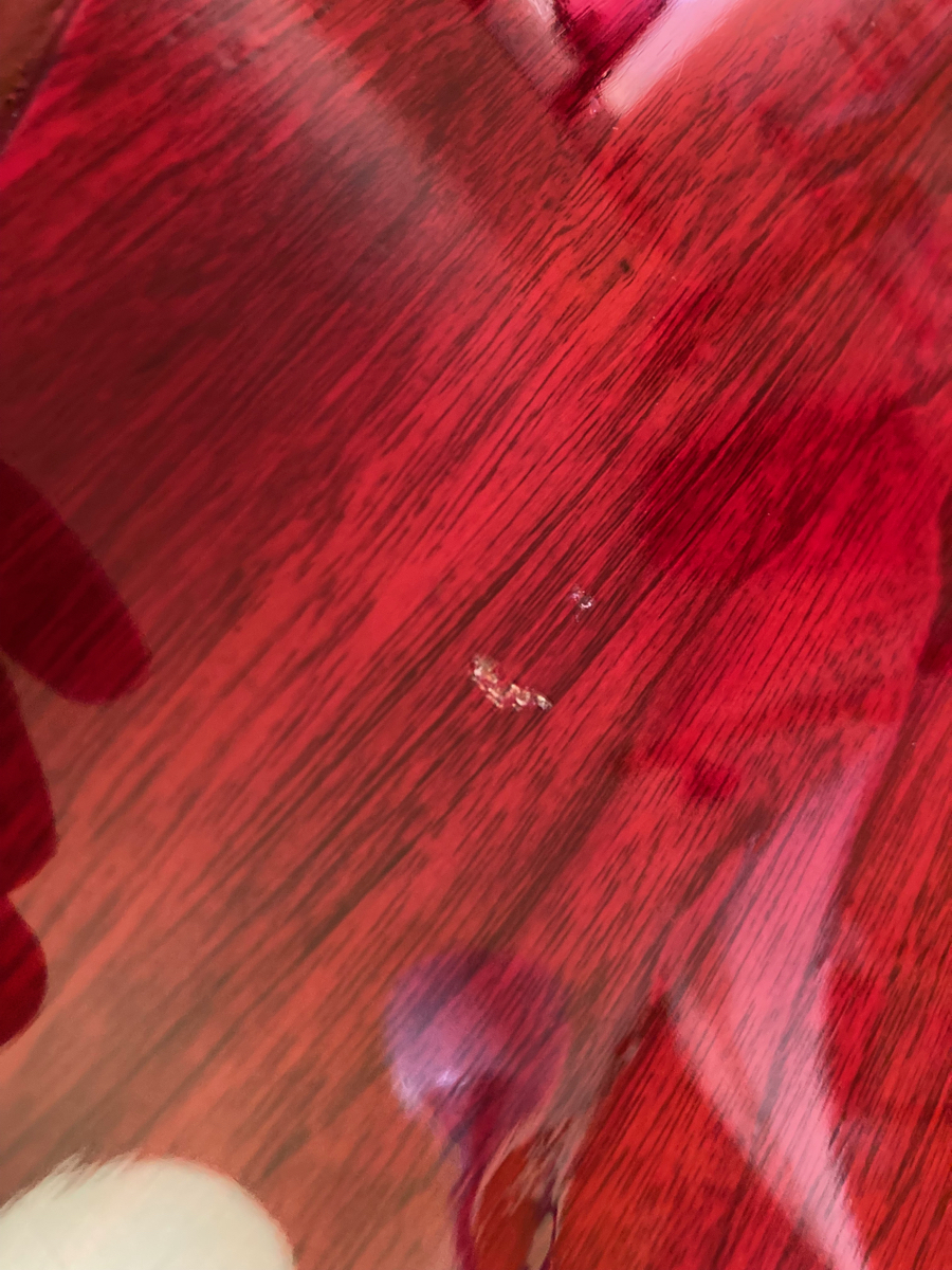 Boo boo shot (for full transparency): 'birthmark' on back caused by solder iron. Actually looks worse in this well lit photo than it really is. Decided didn't warrant adding more lacquer layers. This is a used guitar.